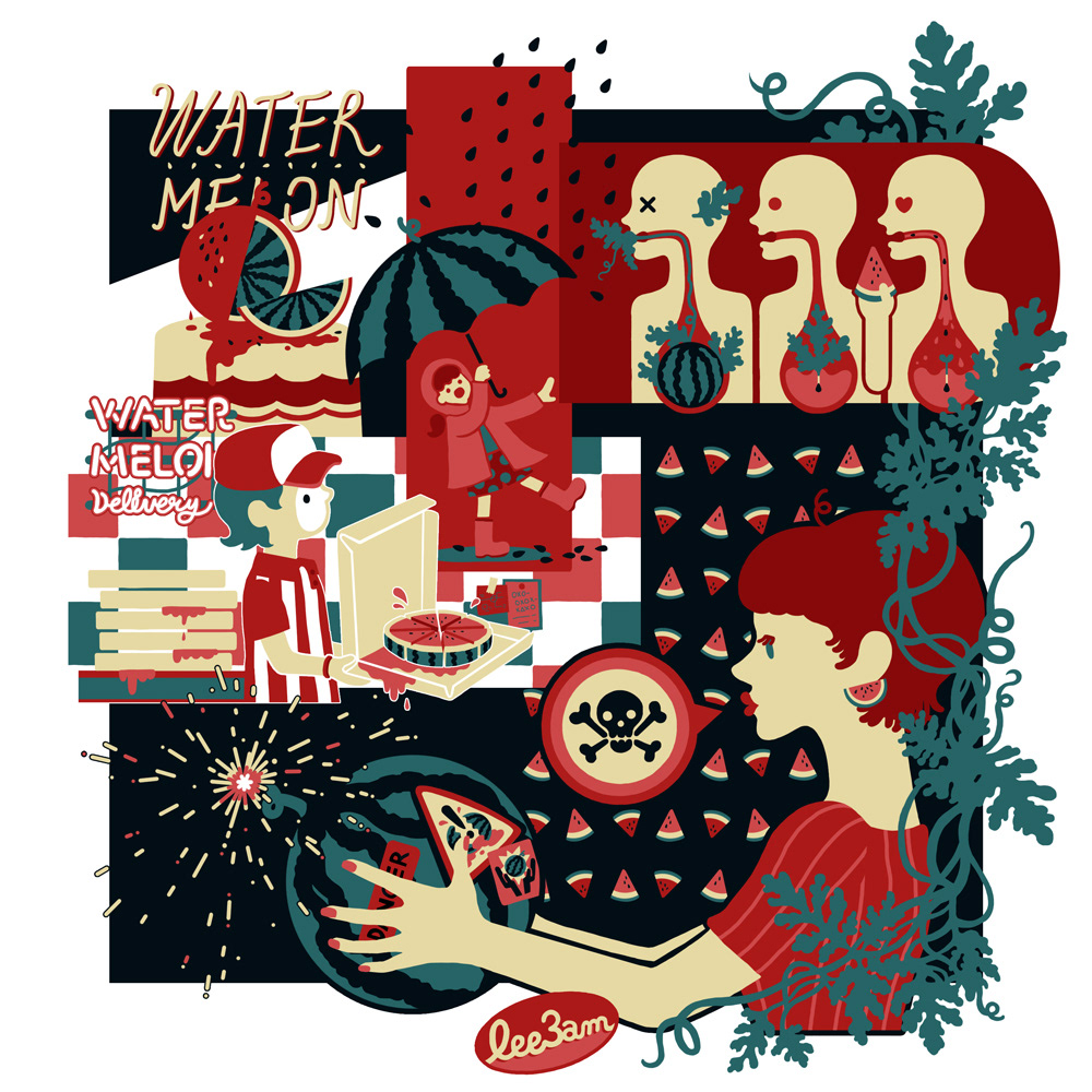 수박에 대한 여러가지 상상을 표현한 일러스트